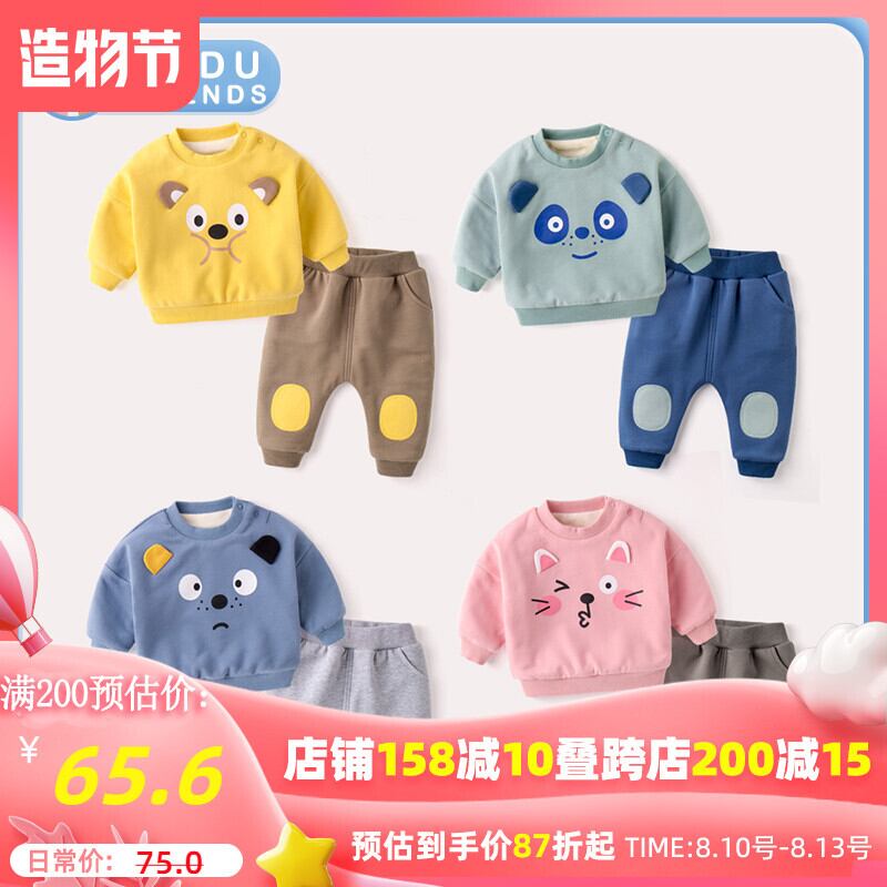 ベビースポーツスーツプラスベルベットベビー服男の子冬エインスタイルセーター子供新しい綿冬服 Duduベイビー2591392