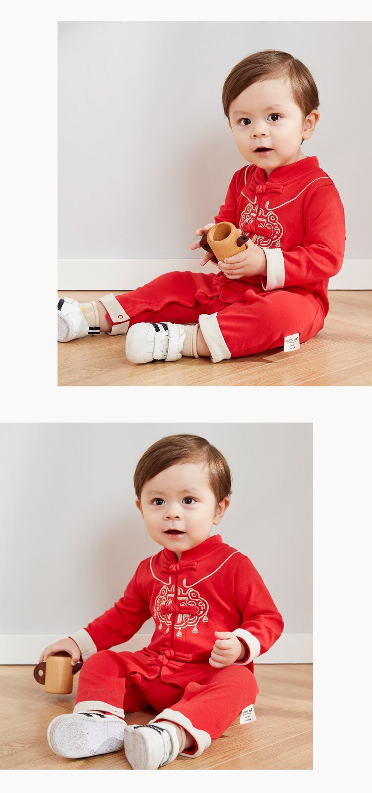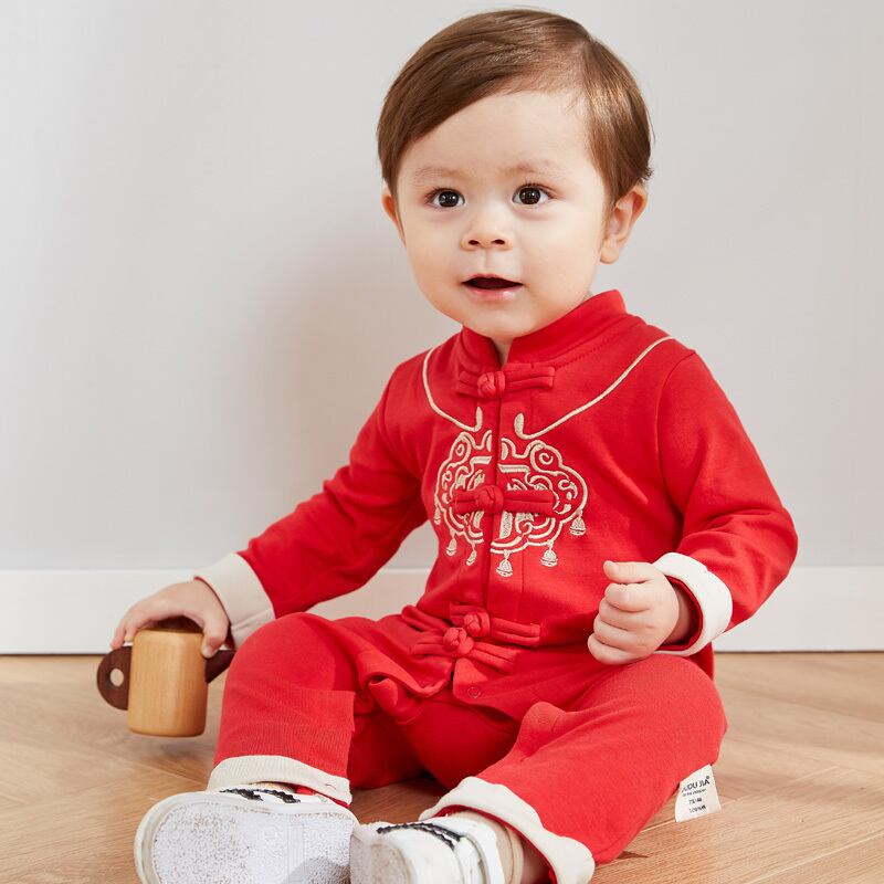 赤ちゃんの年の服のジャンプスーツ春と秋の唐のスーツの女性の赤ちゃんの夏の満月のドレスの新生児の服は周ハンフ男性をキャッチ Duduベイビー1758656