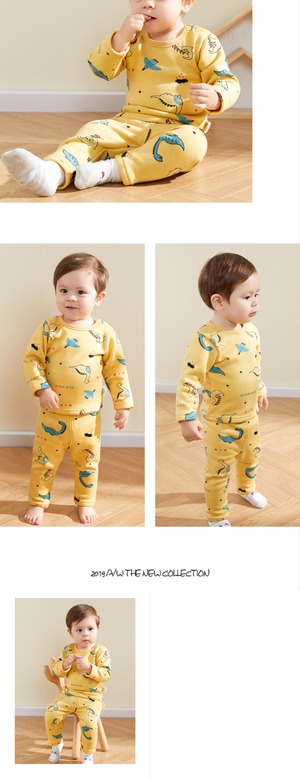 赤ちゃんの秋と冬の熱下着のスーツの男性の秋の服は厚いズボンの冬の赤ん坊プラスベルベットのパジャマの女性の冬の服を厚く Duduベイビー1417468