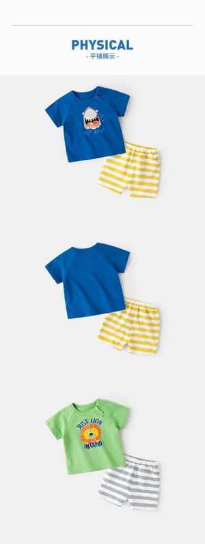赤ちゃんの半袖スーツ夏の薄い漫画の子供服の子供たち2020新しいウエスタンスタイルのストライプのショートパンツの赤ちゃんの夏の服 Duduベイビー40762610313