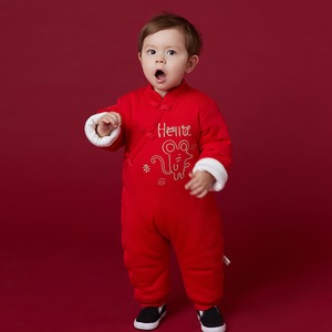赤ん坊の中国の年の摩耗のワンピースのジャンプスーツ秋/冬の男性の赤ん坊の唐のスーツの綿のロンパース Duduベイビー7753498