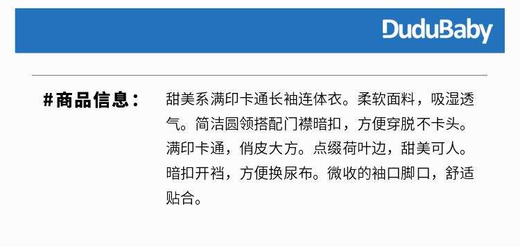 生まれた綿のワンピースの秋の女性のネット赤エイン空気遠出ロンパース赤ちゃんフルプリント漫画秋ロンパース男性 Duduベイビー50474755309