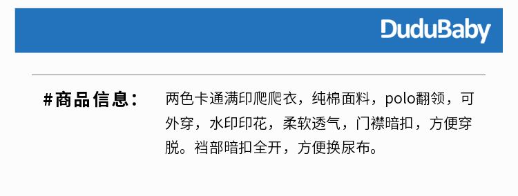 赤ちゃんのワンピース長袖の赤ちゃんの秋の漫画の外出ロンパース新生児の綿の服の男性のポロラペル服 Duduベイビー56742818742