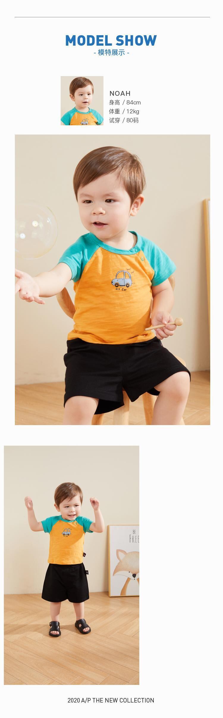 ベビー半袖Tシャツ、夏服、子供用ステッチラウンドネックトップス、新生児夏の綿の服1ベビーコンピネイトタイド Duduベイビー3318525910
