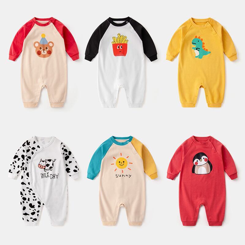 ベビー服春と秋の新生児ジャンプスーツ秋服ベビーロンパースクライミング服メンズコットンパジャマネット赤幼児服 Duduベイビー73329240483