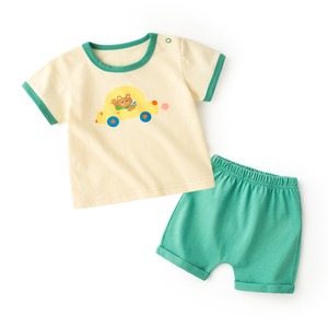 赤ちゃんの夏のスーツの男の子のエインスタイルの綿のTシャツトップス子供半袖ショートパンツツーピース女性服2 Duduベイビー45084114266