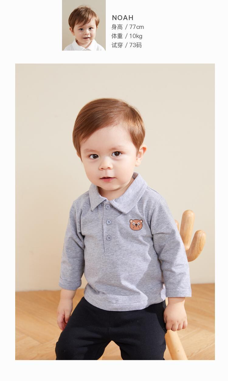 赤ちゃんのTシャツラペルポロシャツ秋の服の赤ちゃんの漫画のプリントTシャツ子供の綿の長袖Tシャツの男性の春と秋の潮 Duduベイビー31684753594