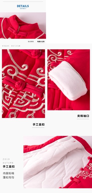 赤ん坊の唐のスーツ年のスーツ冬のハンのスーツ赤ん坊の年の服男の子の年の冬のスーツ赤い1歳のドレス Duduベイビー23995262489