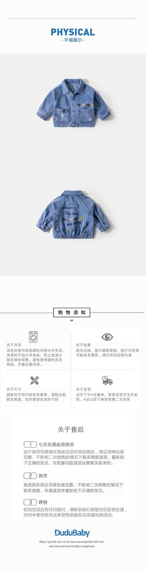 ベビージャケット春と秋エインスタイルデニム服ラペル子供用の新しいジャケット男の子と子供秋服ベビーアウター Duduベイビー17662214102