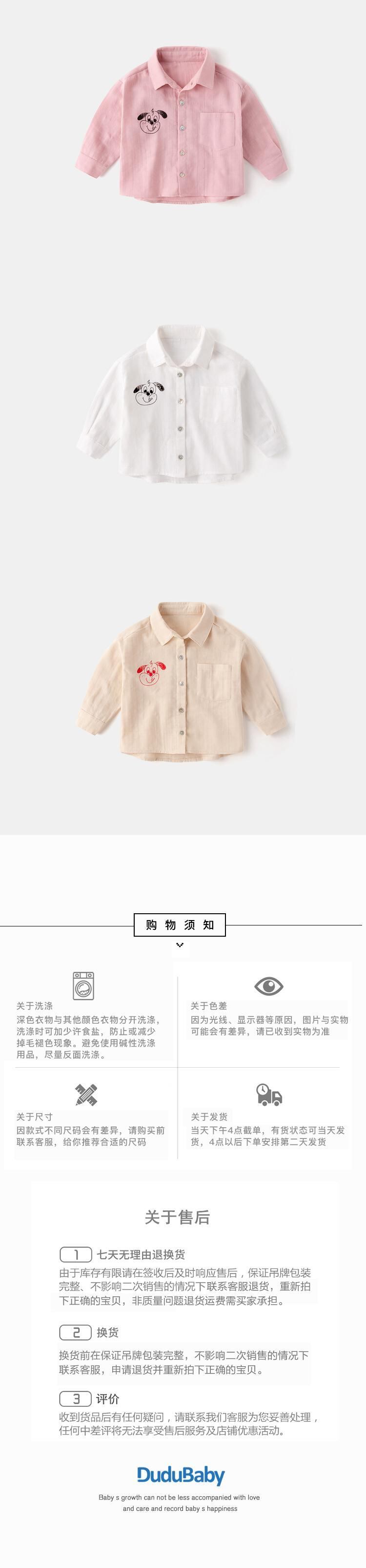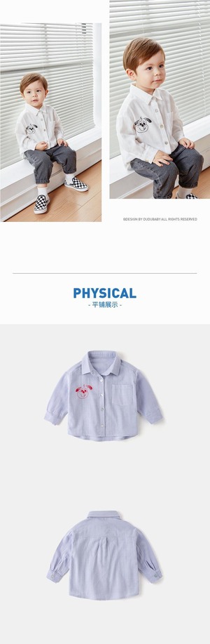 ベビーシャツ春と秋の赤ちゃん漫画無地長袖シャツ男の子エインスタイルラペルシャツ新生児秋服 Duduベイビー36610513013