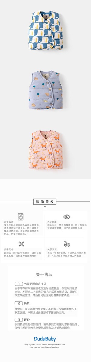 冬服ベビーダウンフルプリントベスト新生児冬漫画子供服男の子赤ちゃん暖かいチョッキ潮 Duduベイビー10981469853