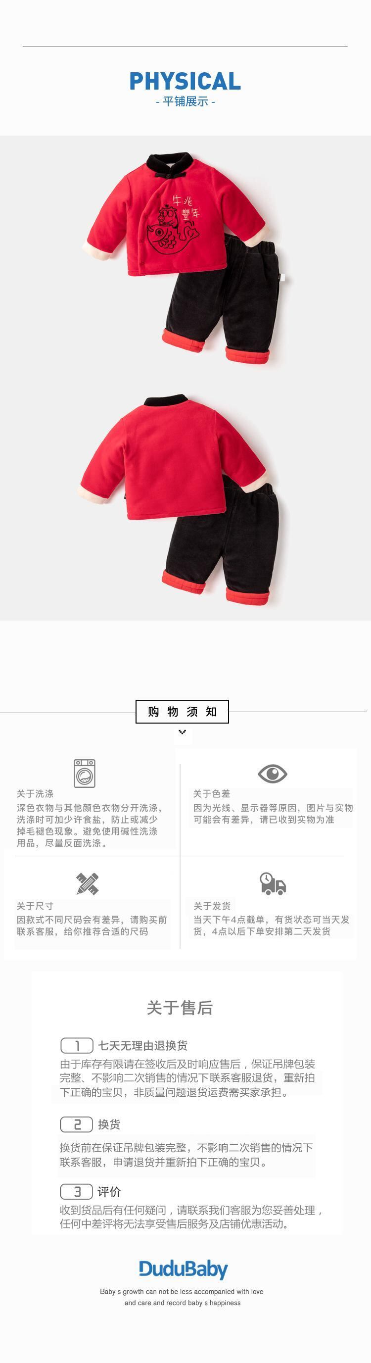 ベビーイヤー服コットンスーツベビープラスベルベット厚い秋と冬のキャッチウィークドレス子供中国年服男性 Duduベイビー57082636394