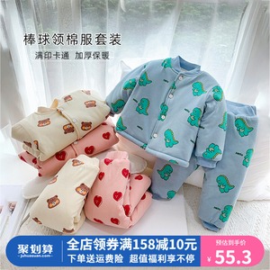 綿で厚くされた秋と冬のベビーパジャマと冬の子供たちの暖かい服の男の子と暖かいベビーホームサービススーツ Duduベイビー79631249913