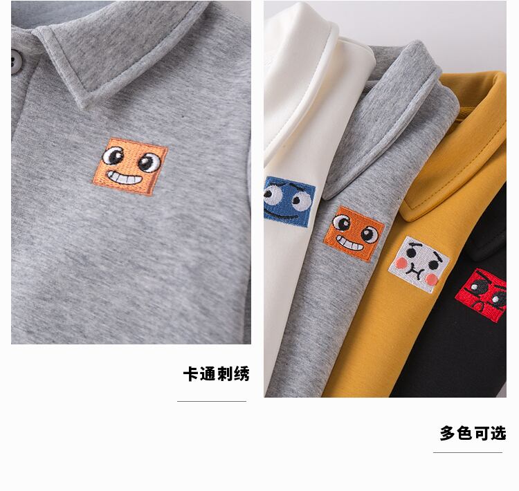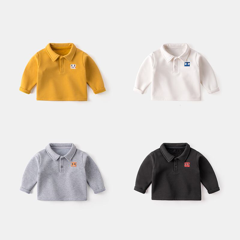 ベビーポロカラー長袖Tシャツプラスベルベットパッド入りベビーボトミングシャツラペル子供服男の子秋冬服女性 Duduベイビー84300265255