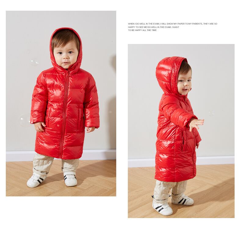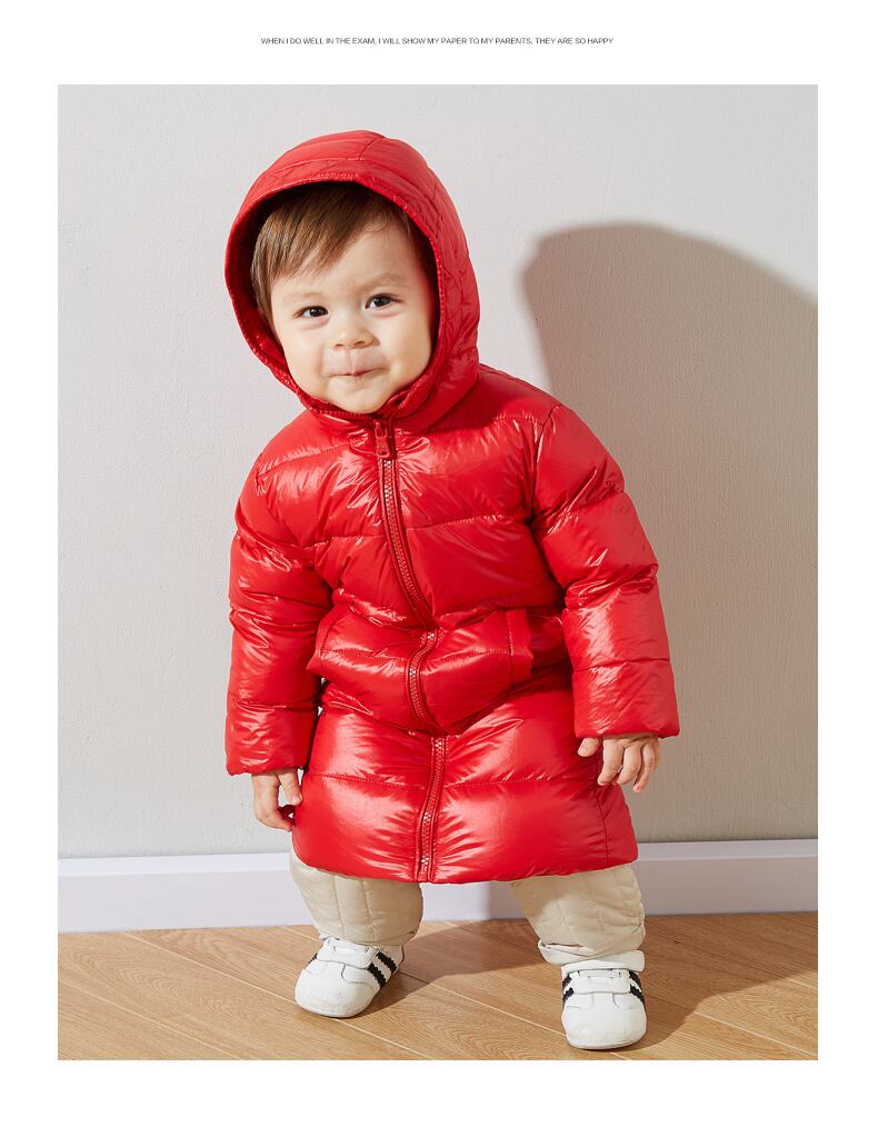 【ダブル11デポジット】ベイビーダウンジャケットライトウェイトガールズ2019ピュアカラーロングセクション1フード付きジャケットベイビーClA Duduベイビー97179620962