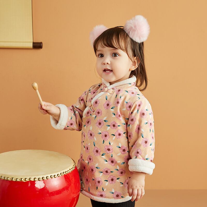 ベビーイヤータンスーツチャイナドレスチャイナドレス秋冬漢服ガールズ冬チャイナスタイルコーデュロイ厚手年着 Duduベイビー43751930164