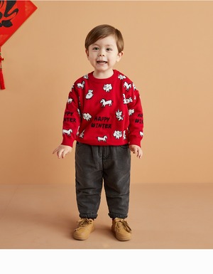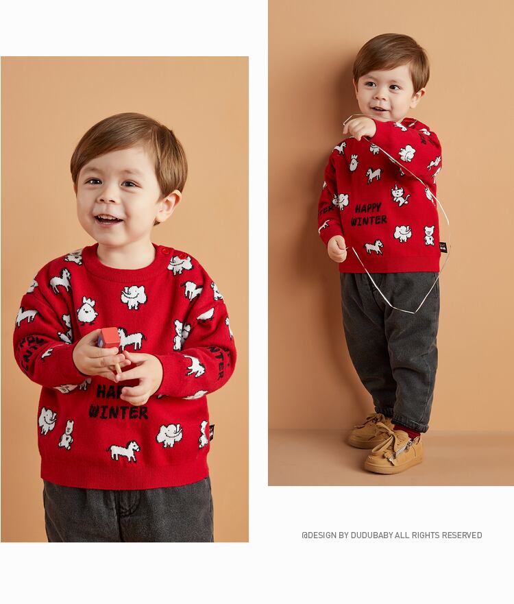 ベビーレッド厚手のセーター秋冬ベビーニットセーター冬2020新年服冬服 Duduベイビー61510408872