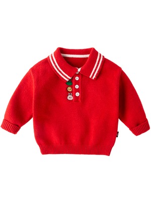 ベビーニューイヤーセーターベビーレッドお祭りセーターラペル Duduベイビー75968196483
