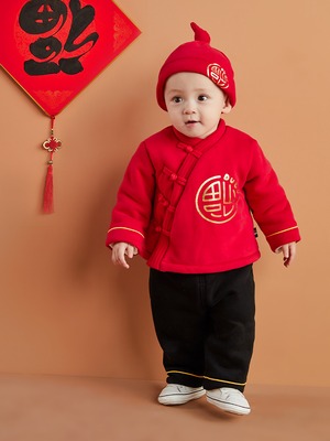 ベビーウィンターキルティング暖かい年服スーツ男性の厚みのある中華風唐スーツ Duduベイビー43883514551
