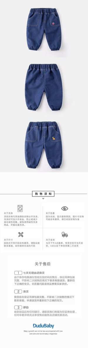 新作ベビージーンズ秋冬男子プラスベルベットパンツベビー冬厚めキッズパンツ Duduベイビー93305276375