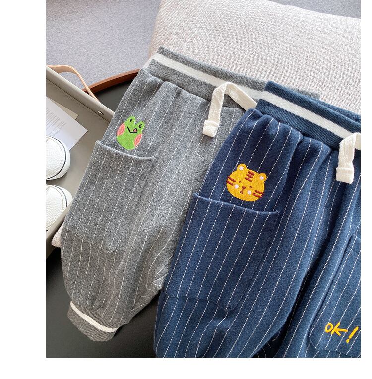 ベビー春のストライプカジュアルパンツ、ベビー春と秋のファッションパンツ、ボーイズスタイルのエインスタイルのパンツ、薄い春の服 Duduベイビー46849690815