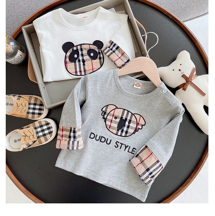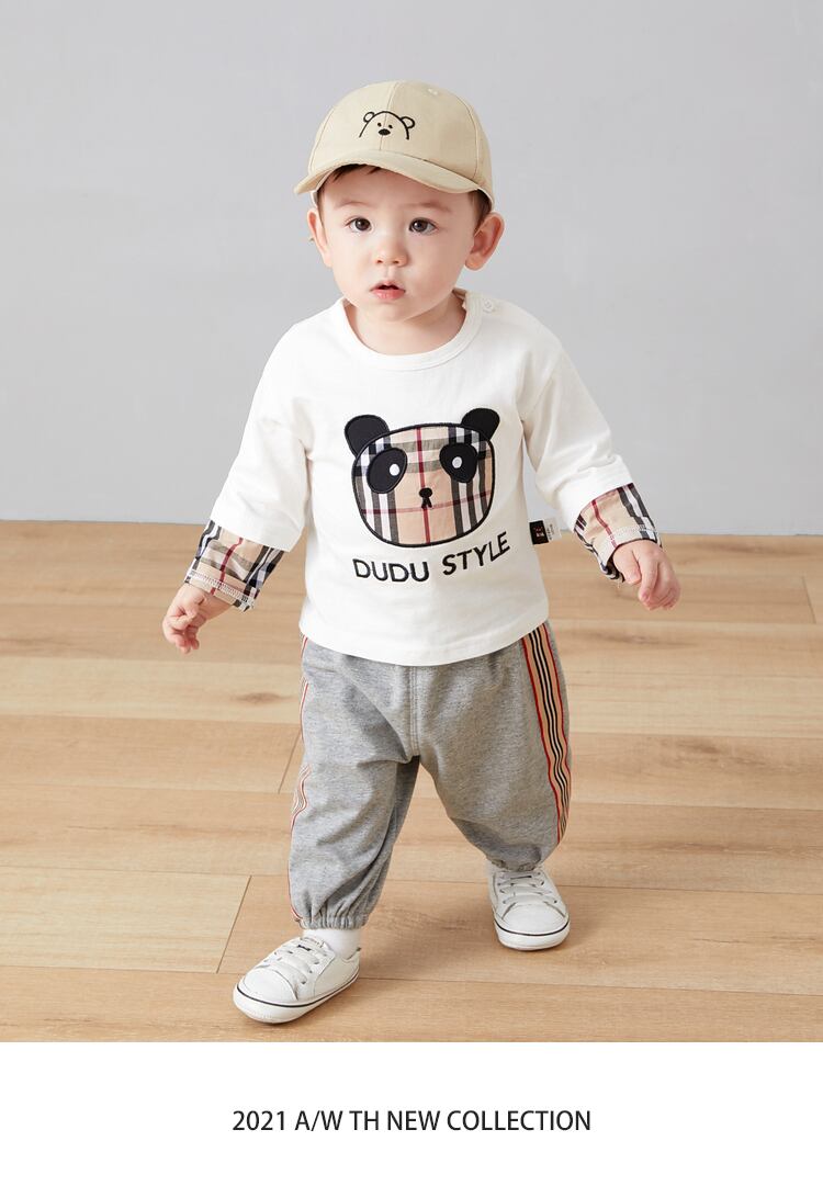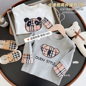 ベビーフェイクツーピースコットンTシャツベビーTシャツ春秋長袖トップスメンズ漫画春服コンピオン綿服潮 Duduベイビー92652245308