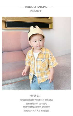 サマースタイル格子柄 コットン シャツ 夏物 Duduベイビー18761643935