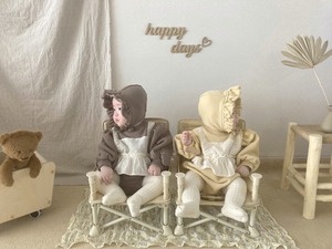 色:薄黄色の薄いベルベットのロンパース+帽子,ライトコーヒーと薄いカシミヤロンパース+帽子