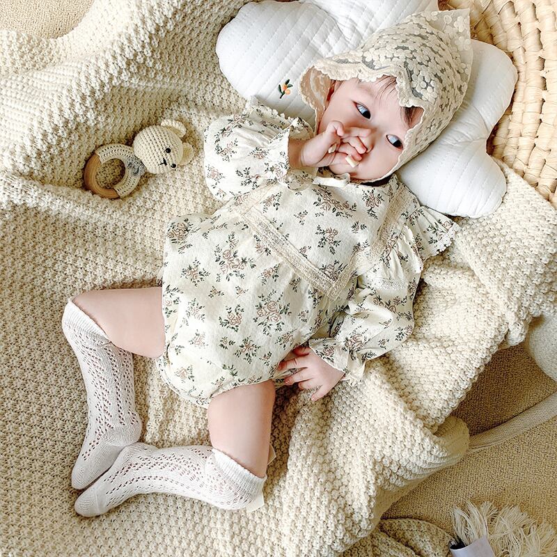 スプリングオータムプリントジャカードロンパース オールインワン ワンピースフローラル ロング コットン 大人ガーリー スウィート キュート カジュアル 春物 秋物 花柄 超面白いベビーショップ64551344494