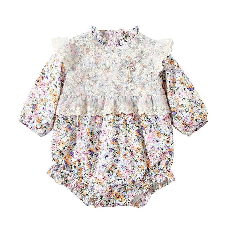 スプリングワンピースフローラルオータムロンパース オールインワン 大人ガーリー スウィート キュート カジュアル 春物 秋物 花柄 超面白いベビーショップ46197327464