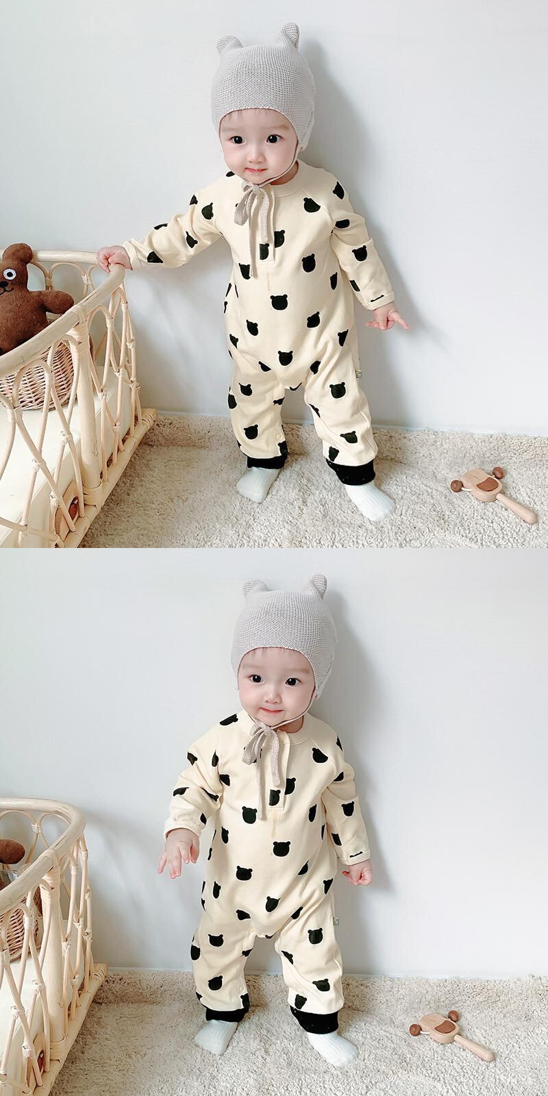 ワンピースラウンドネックロンパース オールインワン プリント柄 ロング Oネック 超面白いベビーショップ74592131424