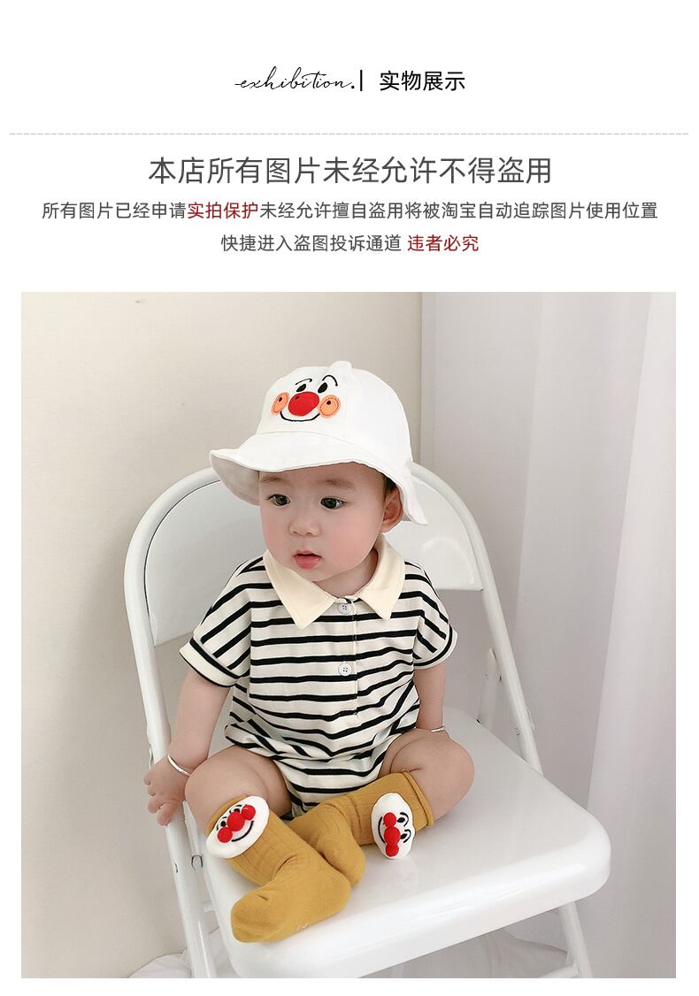 色:スマイリーストライプ半袖,ストライプロンパース+イエローソックス,縞模様のドレス+黄色い靴下+白い帽子