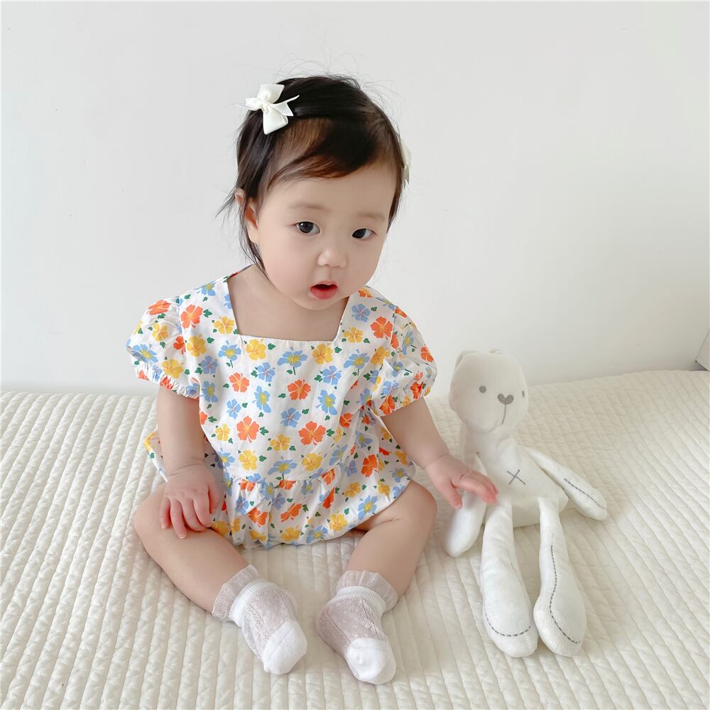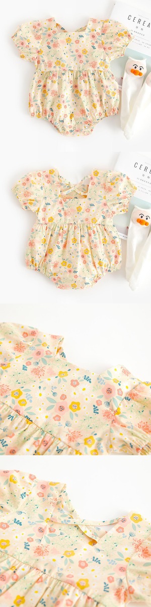 サマースタンダードフローラルワンピースロンパース オールインワン 薄手 レトロ 夏物 花柄 超面白いベビーショップ37396103703