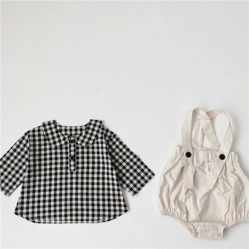色:チェック柄トップ+ベージュパンツ,ベージュトップ+チェック柄パンツ