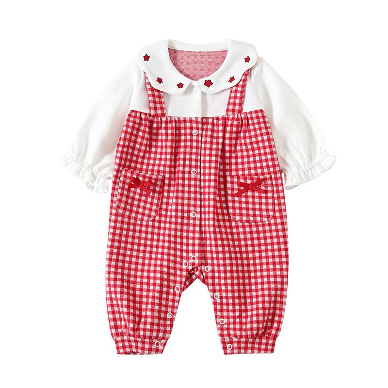 スプリングオータムロンパース オールインワン ワンピース格子柄 春物 秋物 超面白いベビーショップ576798178