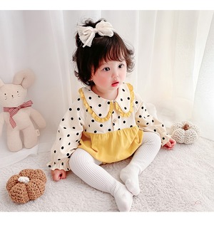 スプリングオータム水玉トライアングルロンパース オールインワン スタイル 春物 秋物 超面白いベビーショップ68805437943