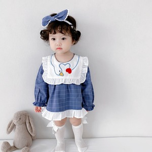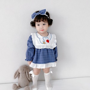 スプリングオータムドレス 格子柄スカート トライアングル レッド 刺繍 春物 秋物 超面白いベビーショップ93802016699