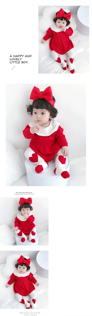 スプリングオータムニットワンピースカラーレッドロンパース オールインワン 春物 秋物 超面白いベビーショップ49482631602
