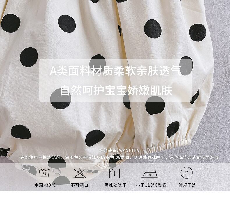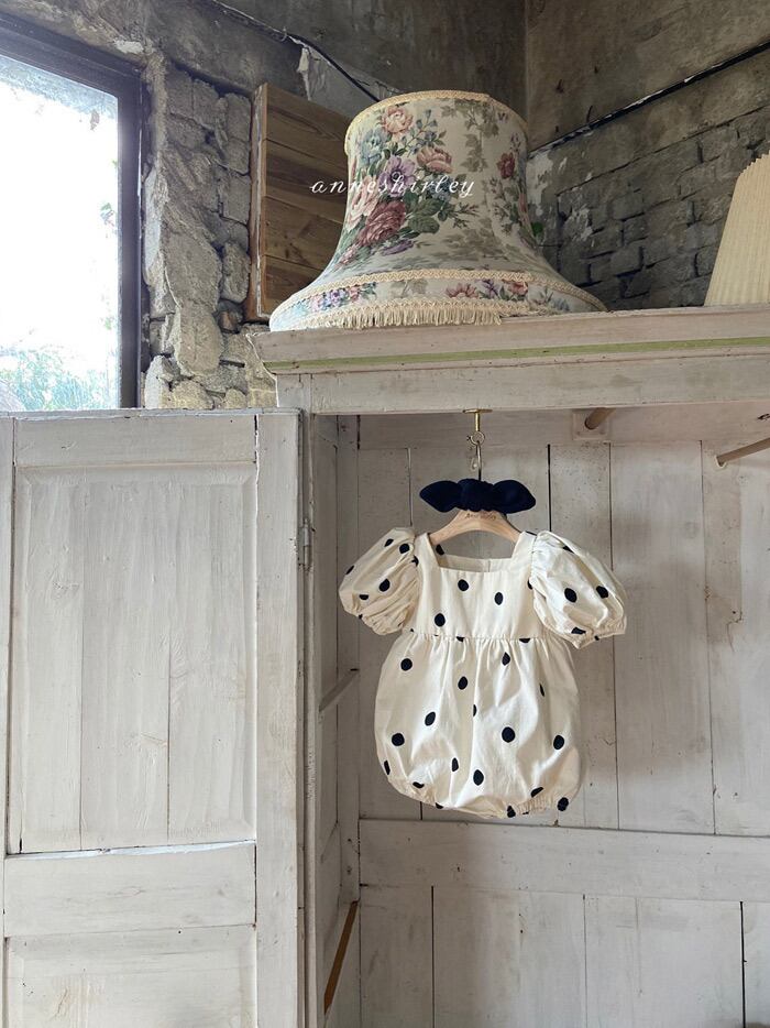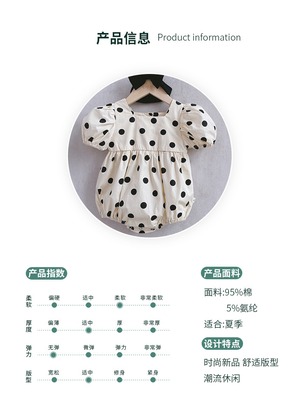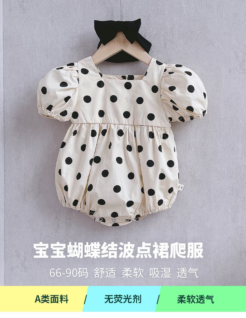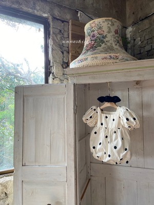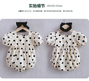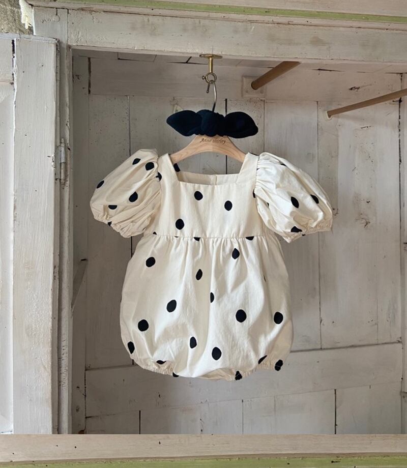 色:スクエアネック水玉ロンパース+ヘッドバンド