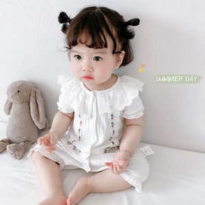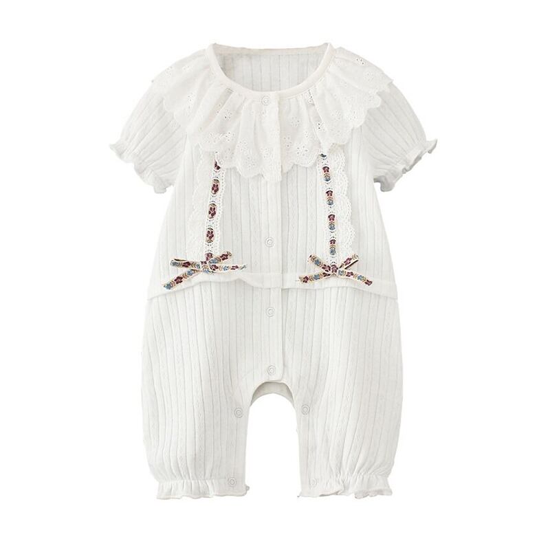 色:白(壊れた花の弓),ピンクのボウロンパース,花柄半袖半袖ショートクライム