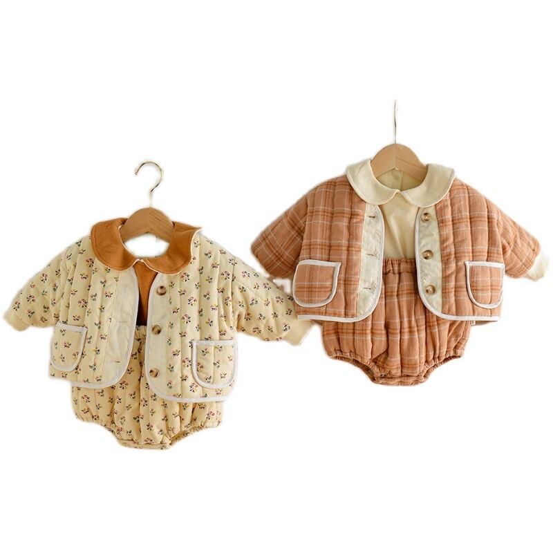 ウィンター格子柄フローラルジャケット トライアングル ロング コットン 冬物 花柄 超面白いベビーショップ689937658