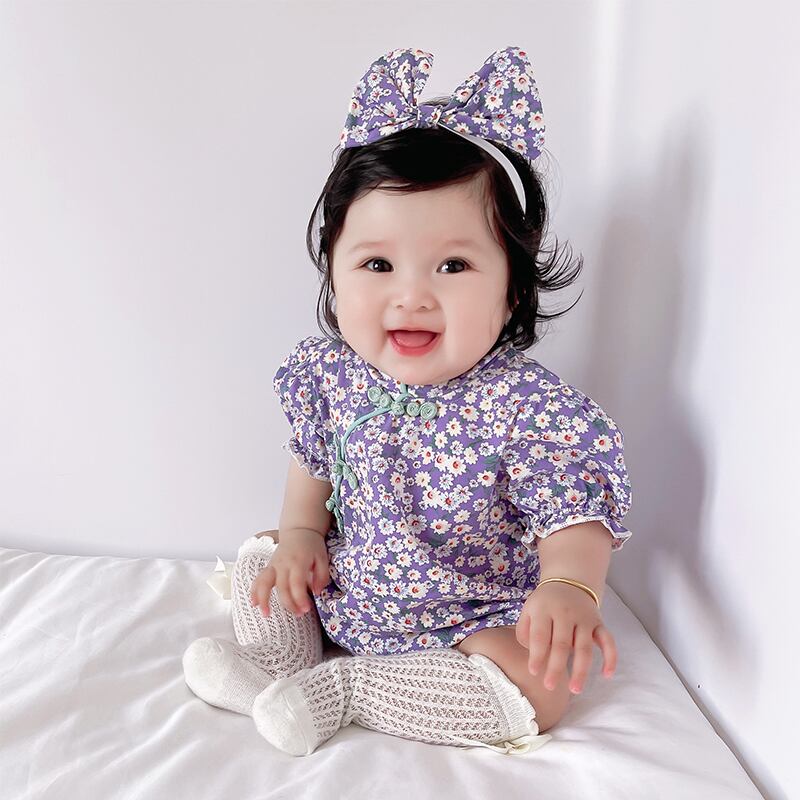 サマー薄手フローラルワンピースロンパース オールインワン ヘアバンド 夏物 花柄 超面白いベビーショップ44682479829