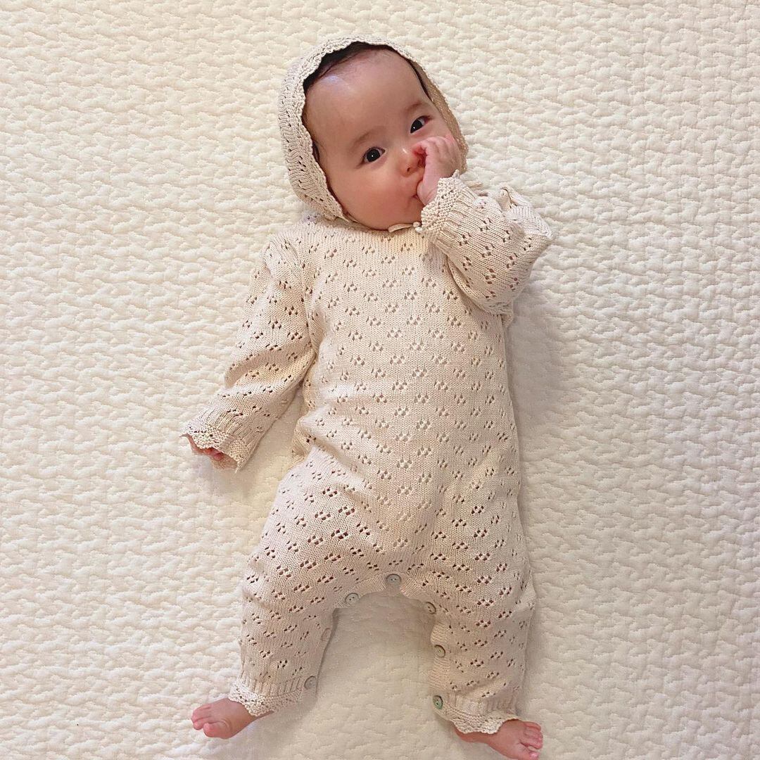 スプリングニット ワンピースレース長袖スリーブフードロンパース オールインワン ロング 春物 超面白いベビーショップ88045717178