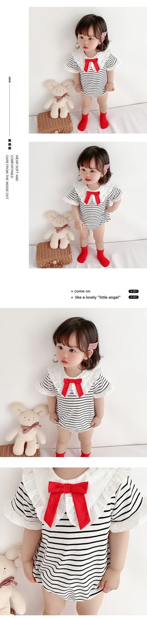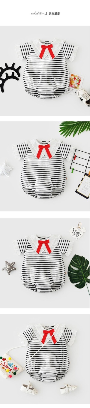ショートロンパース オールインワン ジャンプスーツ オールインワン ストライプネイビー 半袖 ハーフスリーブ 超面白いベビーショップ61603825971