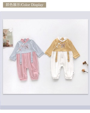 オータムロンパース オールインワン スタイルパッチワークエスニック レッド 刺繍 秋物 超面白いベビーショップ72073057967