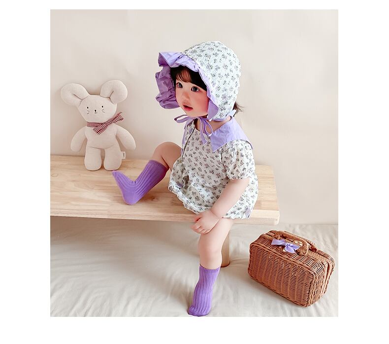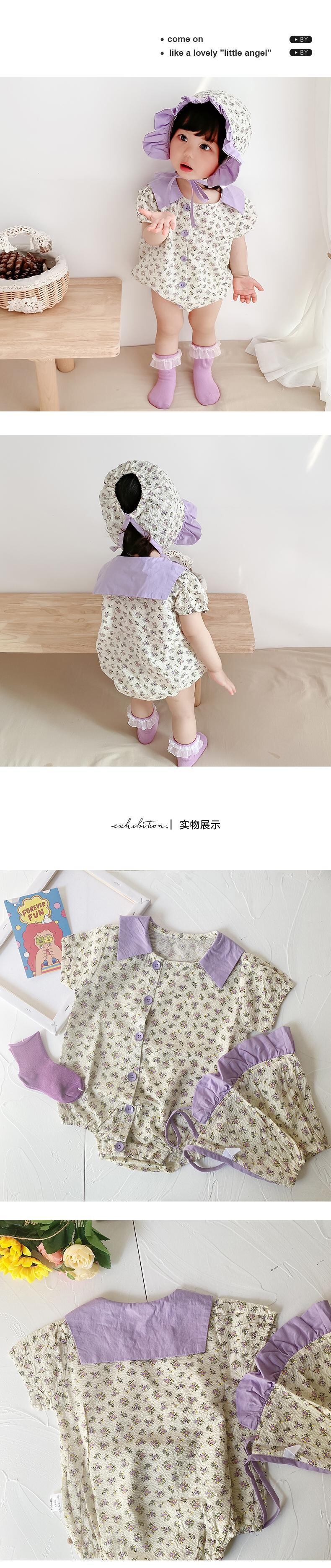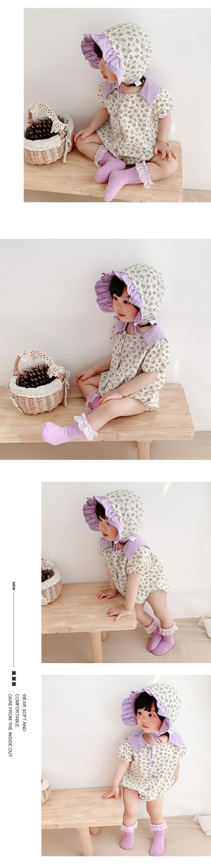 サマーフローラルロンパース オールインワン 帽子 夏物 花柄 パープル 超面白いベビーショップ89813396607