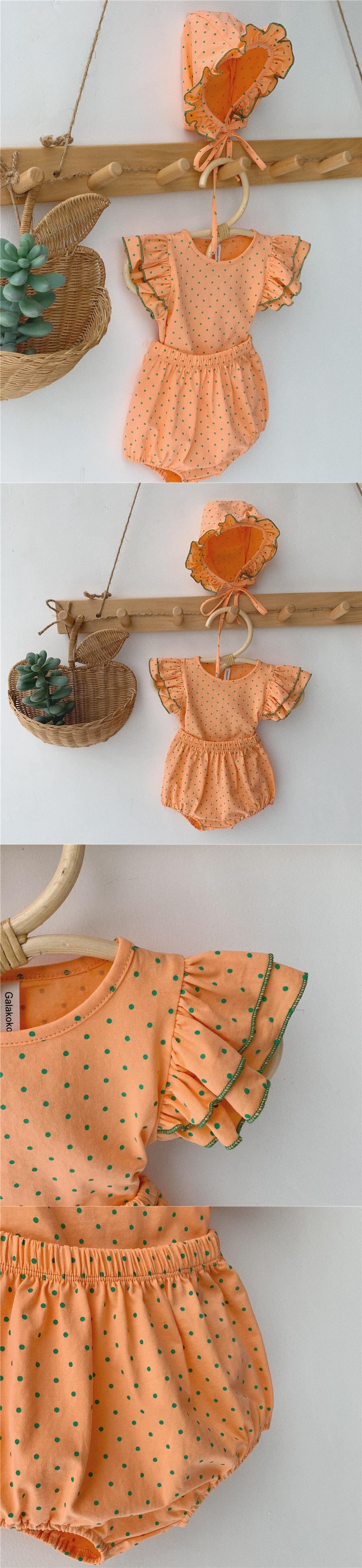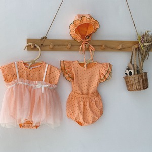 色:オレンジ色の点線のベールスカート2枚,オレンジドットスーツ+ハット