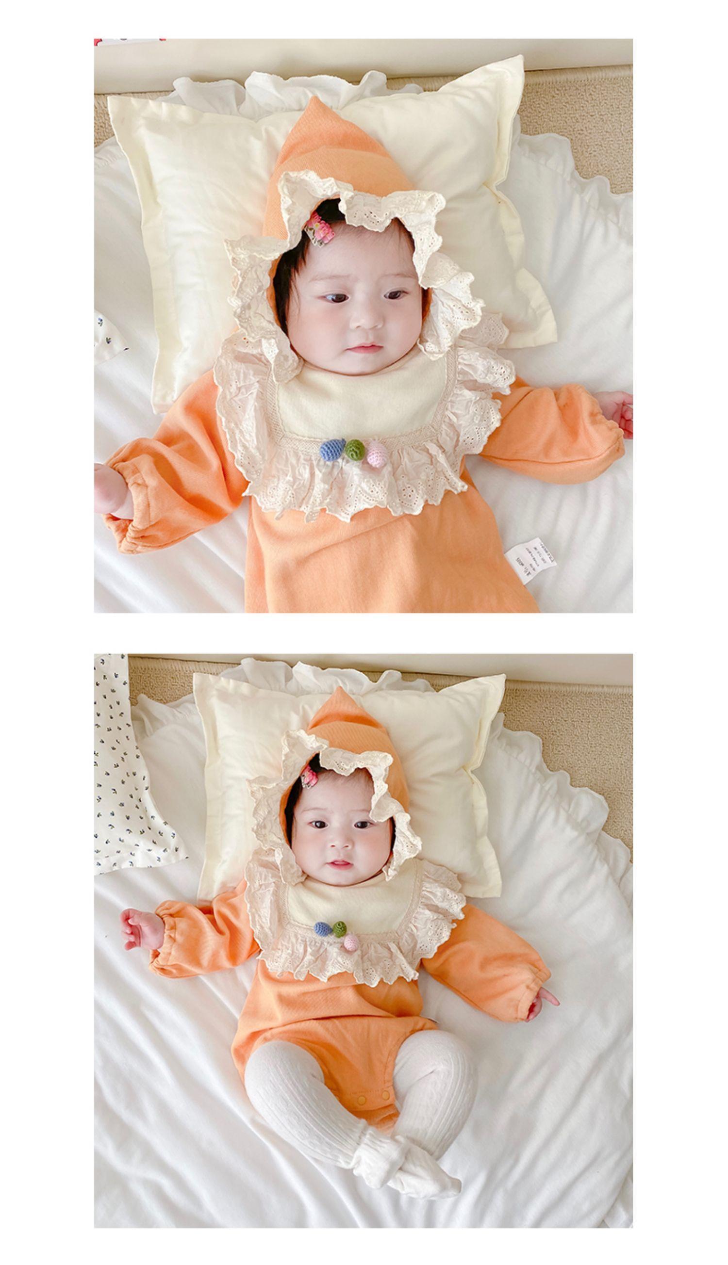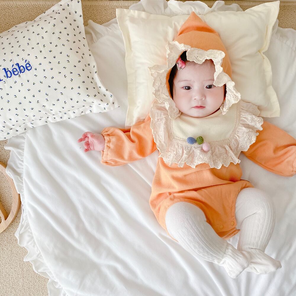 スプリングワンピースオレンジレッドロンパース オールインワン フードスタイル 春物 超面白いベビーショップ23360503898
