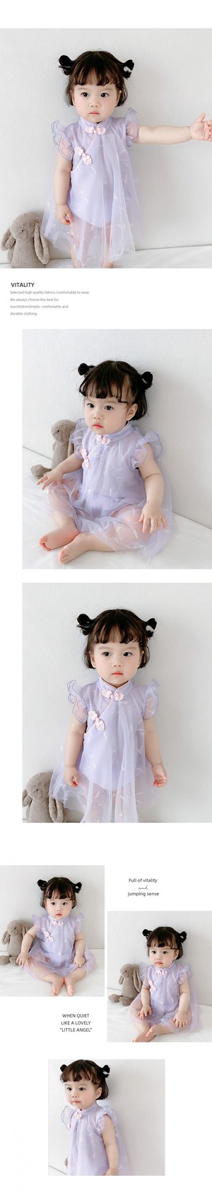 サマーバックルメッシュ刺繍トライアングルロンパース オールインワン ドレス 夏物 超面白いベビーショップ81331974179