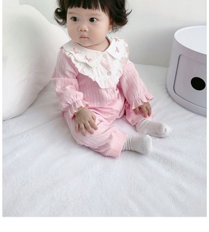 スプリングオータムワンピースドレス リボンロンパース オールインワン シャツ ロング ピンク 春物 秋物 超面白いベビーショップ26919203326